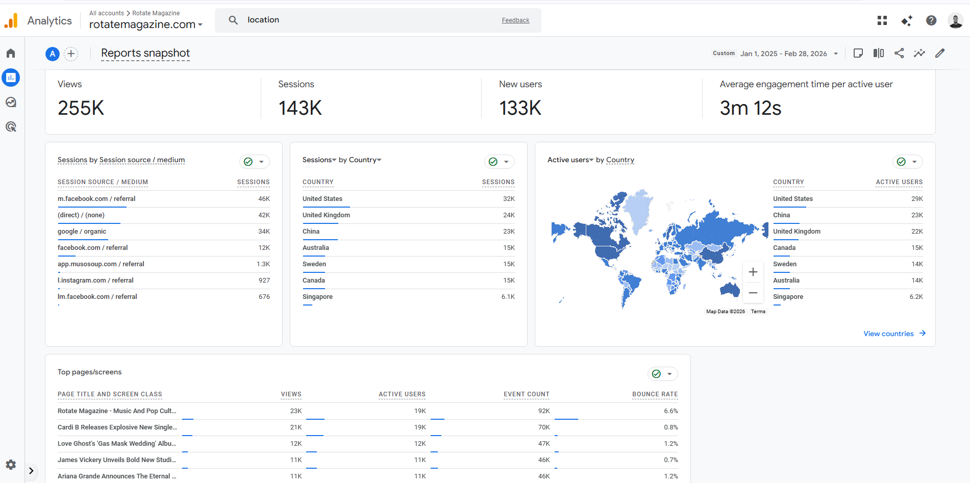 In 2025, Rotate Magazine generated over 4 million search impressions and 300,000 unique views. Our website has a high ranking on search engines such as Google, Bing, and Baidu, ensuring your music reaches audiences on platforms like Ecosia, DuckDuckGo, and many more. (Screenshots Attached)